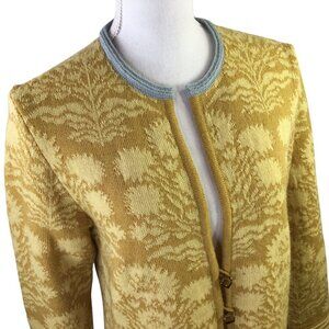 Oleana Cardigan Sweater Norway Norwegian Size L Wool Floral Knit Solveig Hisdal