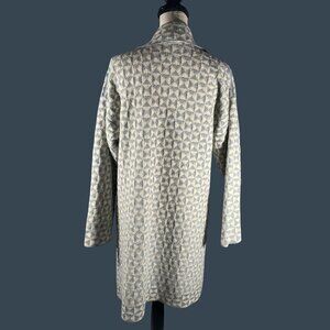 Oleana Womens Medium Alpaca Cardigan Coat Made In Norway Geometric Pattern Blue