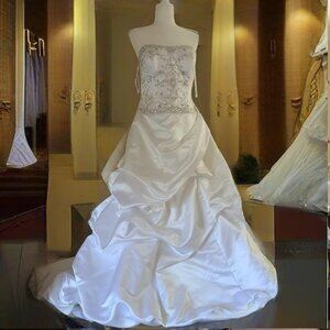CT221 Sweetheart neckline. Stunning white strapless gown featuring an embellished bodice. Perfect for formal occasions. David's Bridal. more photos coming.