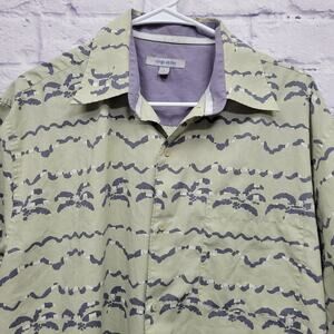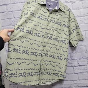 Oleg Cassini Abstract Tropical Button Shirt Size L Linen Blend Short Sleeve Camp