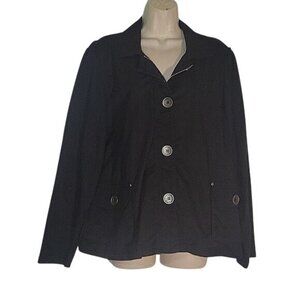 Oleg Cassini Black Cotton Button-Up Jacket Womens XL designer quiet luxury offic