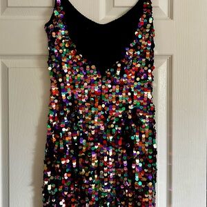 Elegant black sequin dress by Oleg Cassini. Perfect for evening events.