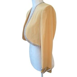 Oleg Cassini Black Tie Vintage Beaded Jacket Size 6 Yellow Evening Cocktail