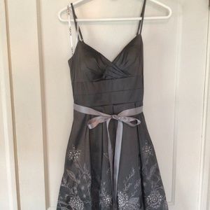 Oleg Cassini Charcoal Fit n Flare Embellished Dress in Charcoal sz 4 EUC