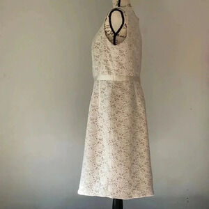 Cream lace sleeveless dress by Oleg Cassini with grosgrain trim.