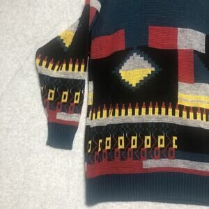 The Oleg Cassini Crewneck Sweater is a vintage 80's piece that exudes a classic preppy style. Made in the USA from wool, this sweater features a crew neck and a pullover style, perfect for a comfortable and stylish look. The blue color and XL size make it a versatile choice for men looking to add a touch of retro charm to their wardrobe. Ideal for those who appreciate quality craftsmanship and timeless design.