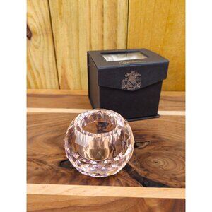 Oleg Cassini Crystal Cut Ball Votive Candle Holder. It boasts a faceted cut ball design, crafted from high-quality clear crystal that beautifully refracts light, creating a sparkling effect. Excellent condition and in original box. No chips or cracks. Measures approximately 2.5 x 2.5 inches. Please see pictures for measurements and details.