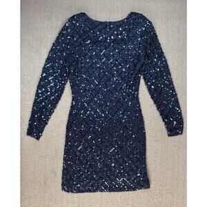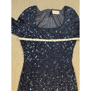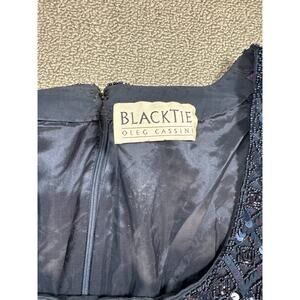 Oleg Cassini Formal Dress Black Tie Sequin Beaded Long Sleeve Navy Blue Size 12