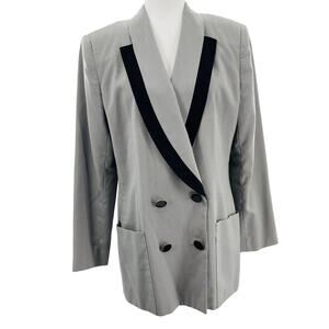 Oleg Cassini Gray Tuxedo Double Breasted Notched Black Trim Blazer Women Sz 12