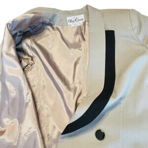 Notched, Tuxedo Style, Collared, Double Breasted, Back slit, Vintage, VTG, Lined, Two toned, Black trim, Formal, Special occasion, Business, Business women, Career women, Career, Work, Retro, Designer, 80s, 90s, Classic Designer