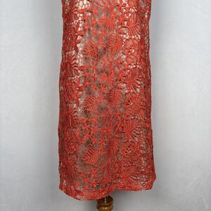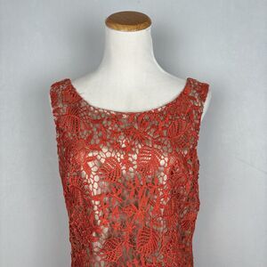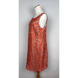 Oleg Cassini Lace Shift Dress 10 Orange Sleeveless Scoop Back Knee Length Party
