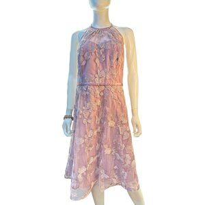Oleg Cassini Lavender Halter Dress with Sheer Embroidered Overlay Sz S NWT