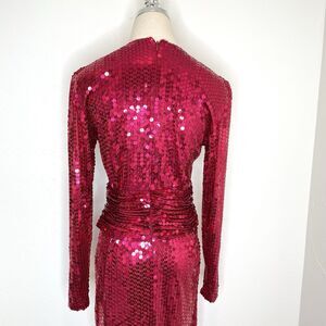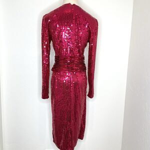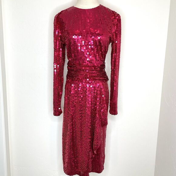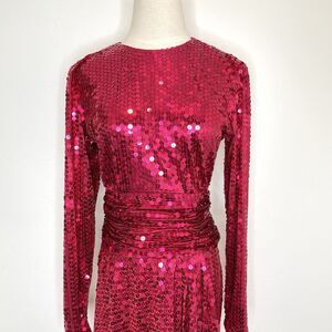 Elegant long sleeve dress with shimmering sequins. Ideal for special occasions. Rich pink color adds sophistication.