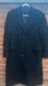 Elegant black overcoat/trenchcoat with a classic design. Perfect for formal occasions or casual outings. No size tag. Probably a men’s L, possibly XL- please refer to the measurements. It does also have shoulder pads. There are a couple of areas of moth bites, but no major tears, rips, stains. Lined with a metallic/shiny dark gray.