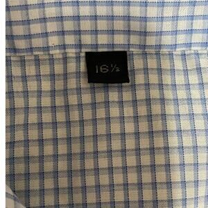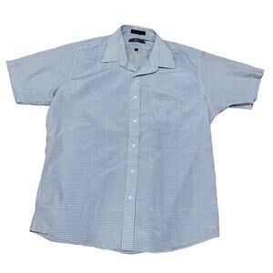 Oleg Cassini Men's 16.5 Short Sleeve Blue White Checked Button Up Casual Shirt
