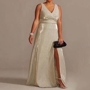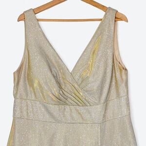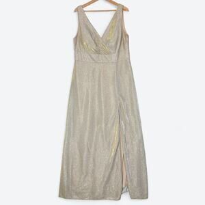Oleg Cassini Metallic A-Line Tank Gown with Slit Skirt Women's 18W Wedding Prom