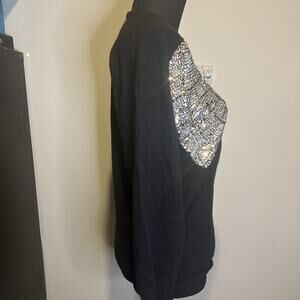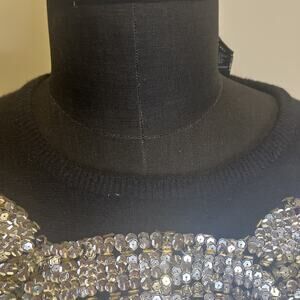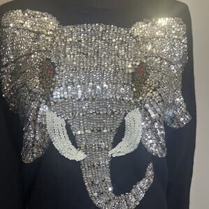 Oleg Cassini Sequin Elephant Wool & Angora Sweater Black & Silver Sz Medium