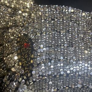 The Oleg Cassini Sequin Elephant Wool & Angora Sweater in Black & Silver is a stylish and versatile addition to any woman's wardrobe. This tight-knit sweater features long sleeves and a pullover style, making it suitable for both casual and formal occasions. The vintage design with sequin elephant adds a touch of elegance, while the wool material provides warmth during the winter and fall seasons. The unique elephant character theme make this sweater a statement piece that is sure to turn heads. Made in Hong Kong, this sweater is a quality item from a reputable brand.