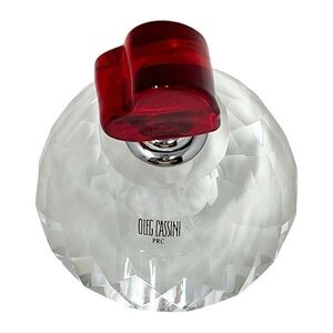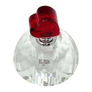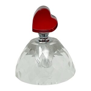 Oleg Cassini Signed Faceted Crystal Glass Perfume Bottle Red Heart Top