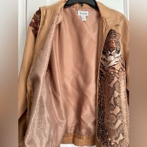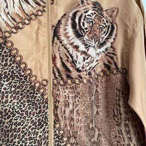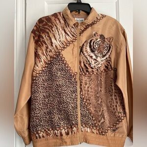 Oleg Cassini Silk Animal Print Bomper Jacket Size: Small