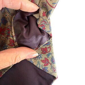 A classic Oleg Cassini silk tie featuring a richly detailed floral paisley design in shades of tan, red, blue, and teal. The smooth silk drape and timeless pattern reflect the elegant designer styles popular in the late 1980s and 1990s. A refined piece that suits business, special occasions, or vintage-inspired wardrobes.