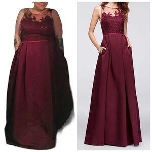 Oleg Cassini Size 20 Red Wine Ball Gown Dress with Pockets