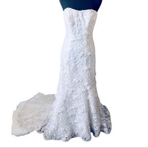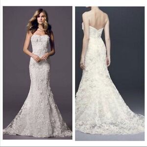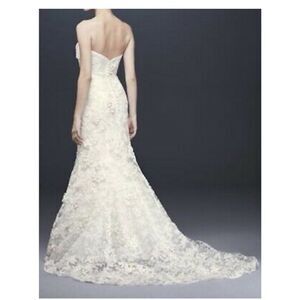 Oleg Cassini Subtle Pink 3D Floral Trumpet Wedding Gown SIZE 2