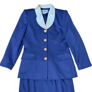 Oleg Cassini Vintage 80’s Royal Blue White Collar Skirt Set Size 10