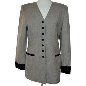 Oleg Cassini Gray Vintage Suit Sz 8 100% Wool Fully Lined 3/4 Walking Jacket & Skirt