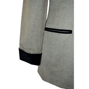 Jacket: Fully Lined, V-Neck, Long Sleeves with Velvet Cuffs, Padded Shoulders, Velvet Covered Buttons, Top Slit Pockets with Velvet Trim, Princess Seams, Pockets Still Sealed