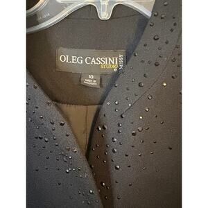 Oleg Cassini Women's Button-up Beaded Black Long Blazer Jacket Size 10 NWT
