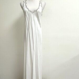 Oleg Cassini intimates white fine cotton slip gown M black eyelash lace