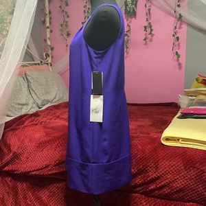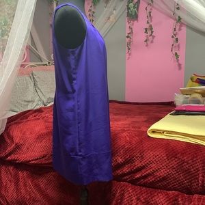 Straight line dress sleeveless zip close back silky feel material purple size 4 nice dress for an evening event.