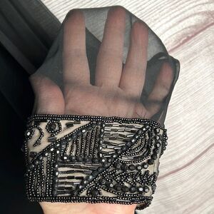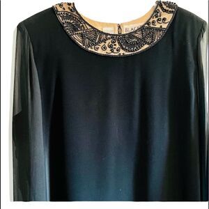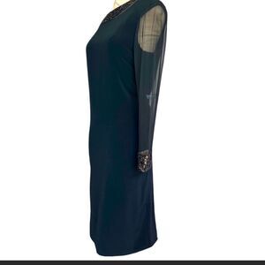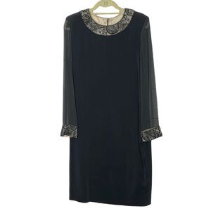 Oleg Cassini Black Tie Formal Shift Black Dress Beaded Neckline and Cuffs