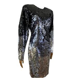 The Oleg Cassini Size 6 80s Intricate Beaded MIDI Gala Evening Cocktail Dress Y2K is a stunning black pencil dress with long sleeves, perfect for a party or cocktail event. The intricate beading detail gives off an elegant and glamorous vibe, fitting for a special occasion. This dress captures the essence of the 80s theme with its classic design and luxurious accents, making it a standout choice for any woman's wardrobe. Vintage 80s Dead Stock #olegcassini 80s Intricate Beaded MIDI