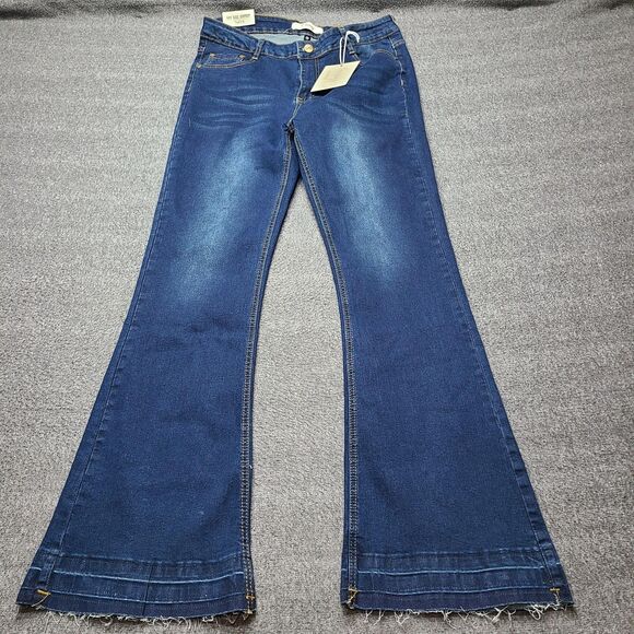 Olevey Jeans Womens 15 Blue Low Rise Bootcut Stretch Flare Raw Hem Y2K Style