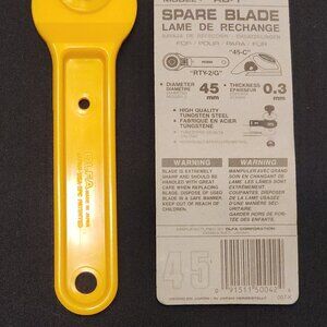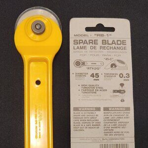 The Olfa RTY-2/G Rotary Cutter is a high-quality cutting tool perfect for both sewing and crafts. Made in Japan with a durable steel blade, this rotary cutter is designed for precision cutting with its 45mm blade size. Included in the set are a smaller rotary cutter "size unknown not marked" replacement blades and a tracing wheel, ensuring you have everything you need for your crafting projects. The trusted Olfa brand ensures reliability and accuracy in every cut.