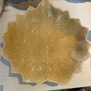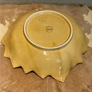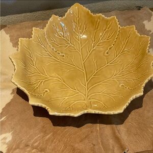 Olfaire Portugal Decorative Art Maple Leaf Dish Bowl Golden Yellow 14”