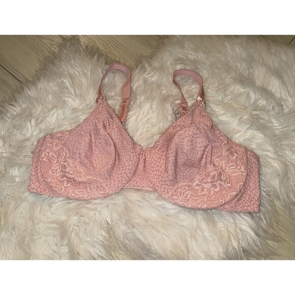 Olga 35063 Luxury Lift Full Coverage Bra UW Unlined Printed Lace Womens 40C Pink