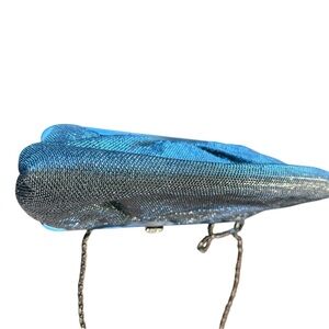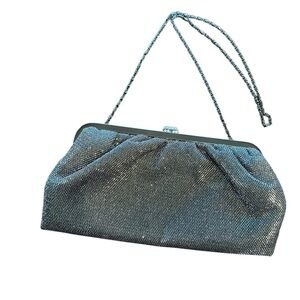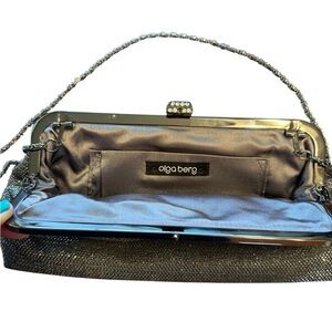 Olga Berg Clutch Silver Chain Metal Evening Cocktail East West Shoulder Bag NWOT