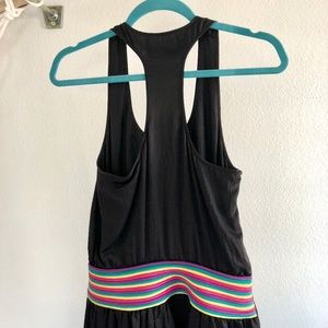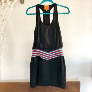 Love this 100% silk cocktail dress with amazing rainbow detail at the waistline. Features a racerback and one functional pocket. Size 2. Fits like XS.