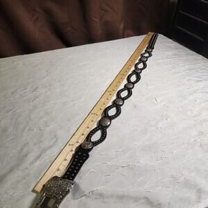 Olga Santini Western Equestrian Belt Ladies Womens Size M Black Cut Out Studs