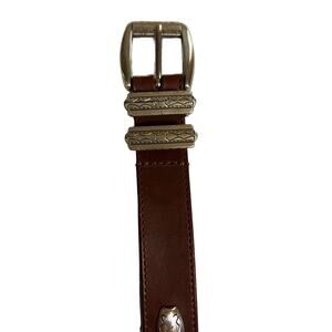 Olga Santini Women's Belt Brown Leather Silver Metal Detail 1" Wide Style 4175A