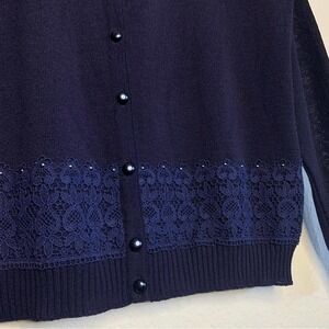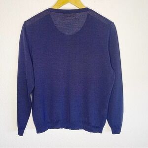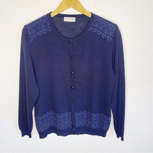 Olga Santoni Classic Blue Knit Embroidery Detail Button-Front Sweater Size USA44