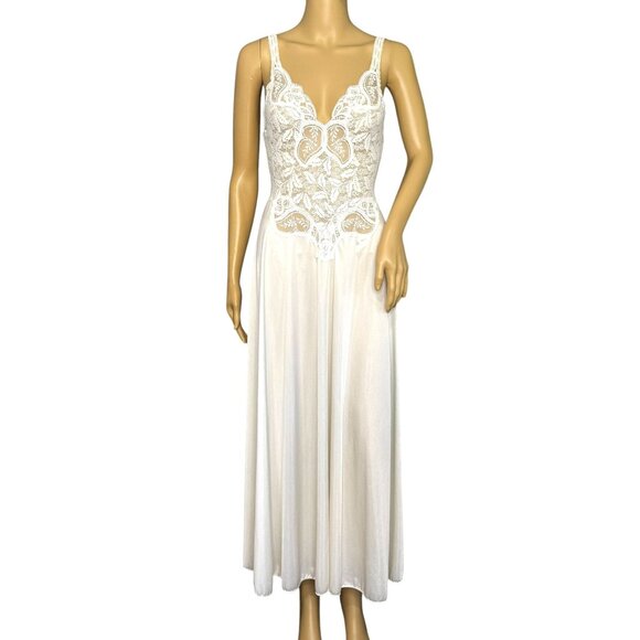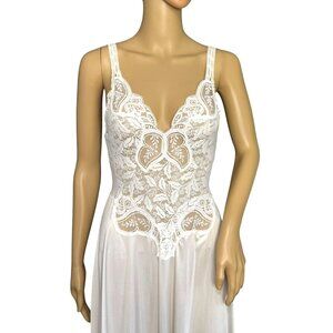 Olga Vintage 91060 Nylon/Spandex Elegant White/Ivory Lace & Satin Sleeveless Nig