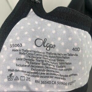 Olga Womens Unlined Underwire Black Polka Dot Bra 35063 Size 40D