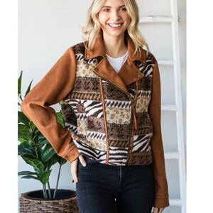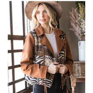 Oli & Hali “ Becky “ Oli and Hali JACQUARD MIXED SUEDE MOTO JACKET 33