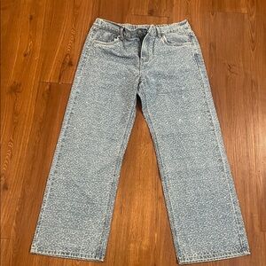 Chic light blue jeans with rhinestones front and back Ideal for everyday style. 100%cotton elastic at waist