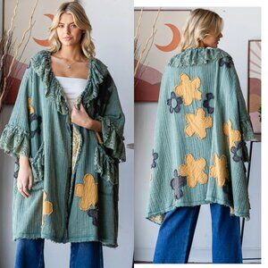 ππOli & Hali LAST ONE! FLOWER PATCHWORK LACE RUFFLE DUSTER NWT Sz L