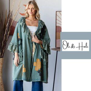 Add a romantic, free-spirited touch to your wardrobe with this stunning Washed Flower Patchwork Lace Ruffle Sleeve Duster from Oli & Hali. Designed with artistic flair and thoughtful details, this piece is the perfect statement layer for any season.